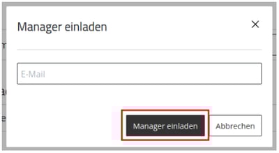 - Geben Sie die E-Mail des neuen Managers ein und bestätigen Sie diese Aktion mit einem Klick auf Manager einladen.