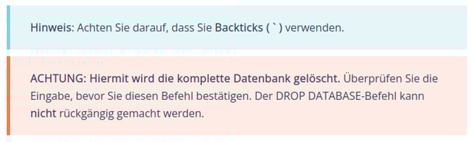 - Geben Sie folgenden Befehl ein, um die aktuelle Datenbank vollständig zu löschen: